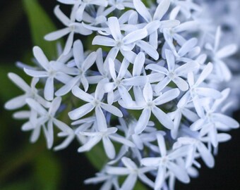 89-363 Description Powdery blue flowers with red stems. Green all summer the foliage turns.