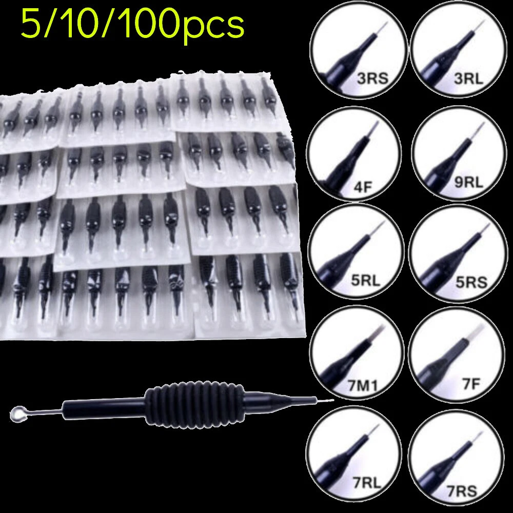 5 10 100 Pcs Sterile Tattoo Needle With Tube 3 4 Grip And Tip Rt Rl F Rs M1 M2 Ebay